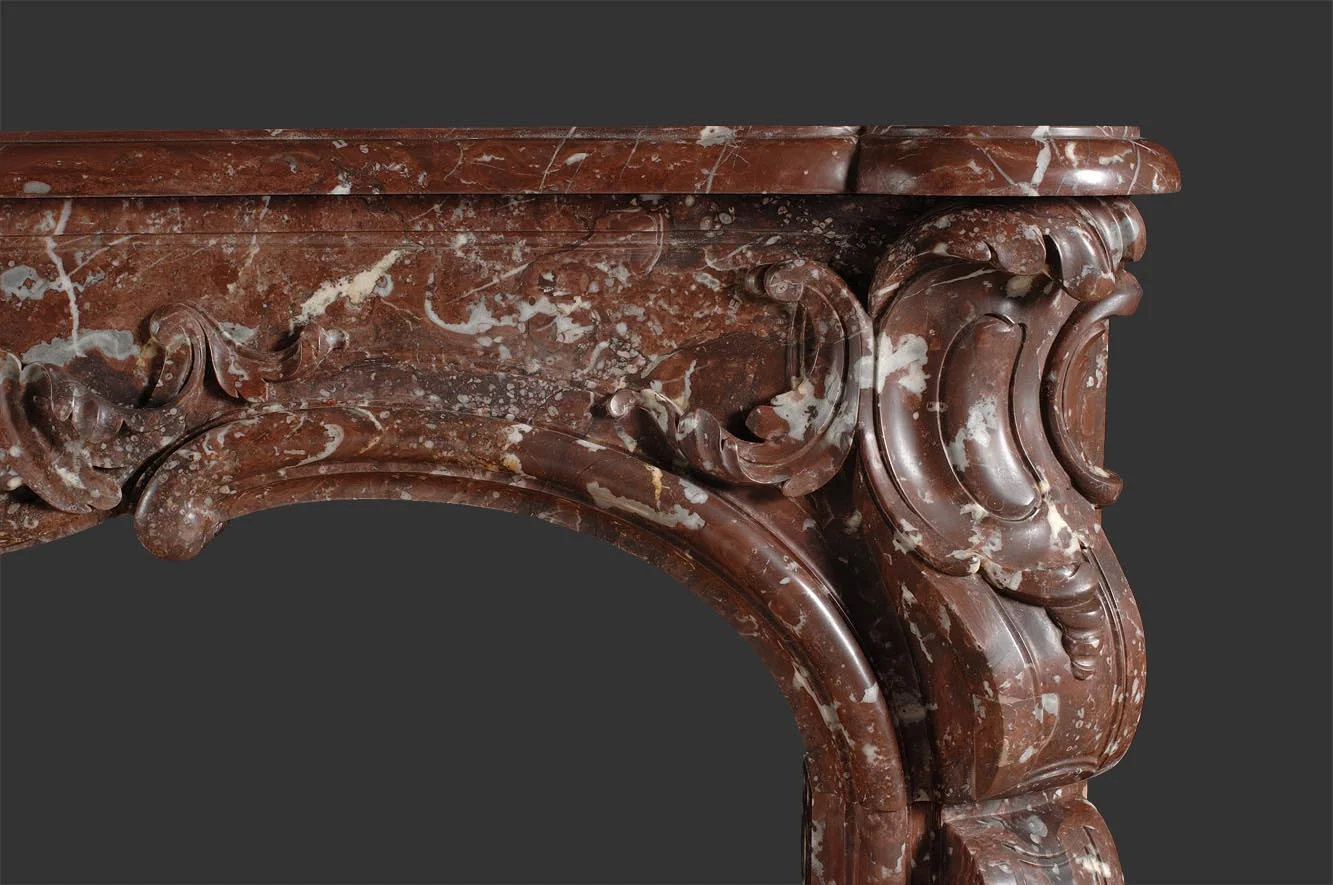 Fine quality French Louis XV style Belgium Red Griotte marble fireplace